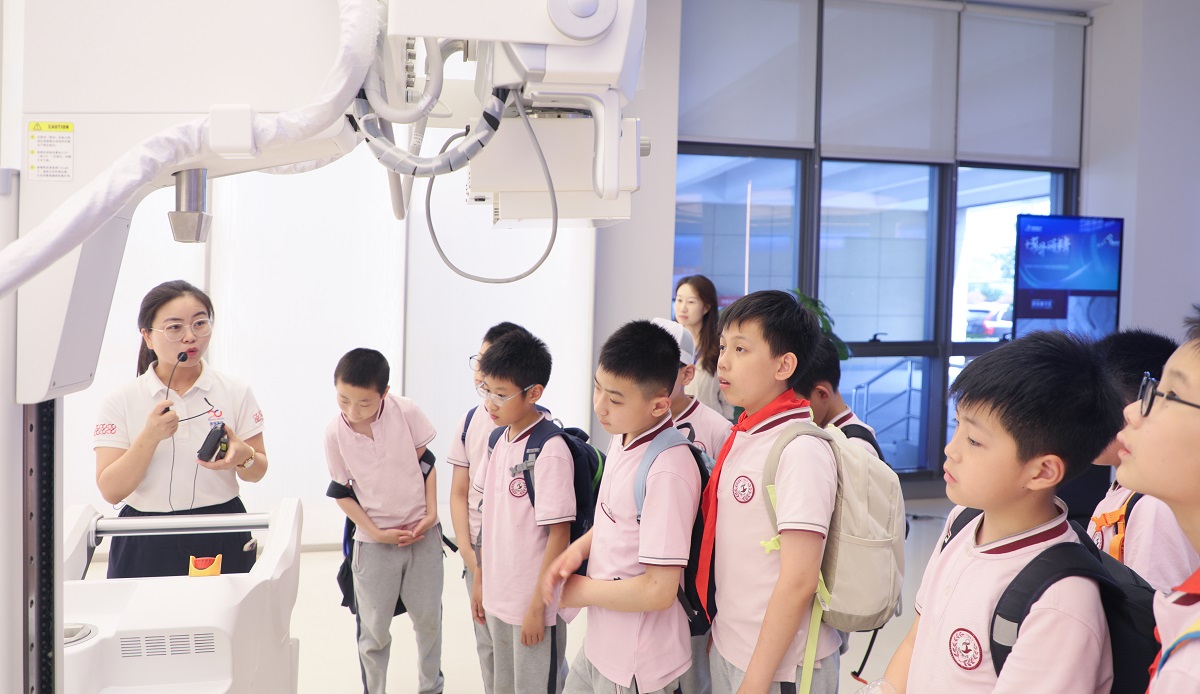 為了向同學(xué)們更直觀地展示醫(yī)療設(shè)備誕生的過程,理解科技發(fā)展為人類疾病的精準(zhǔn)診療發(fā)揮著怎樣的價值,工作人員特別安排同學(xué)們參觀生產(chǎn)調(diào)試車間。見證一臺影像設(shè)備從安裝、調(diào)試到可以拍攝影像的完整流程。