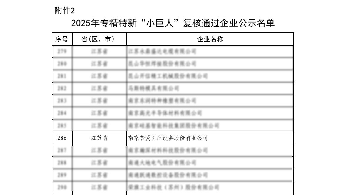 近日,工業(yè)和信息化部2025年專精特新“小巨人”企業(yè)復(fù)核結(jié)果公布,南京普愛醫(yī)療設(shè)備股份有限公司憑借22年深耕醫(yī)學(xué)影像與手術(shù)機(jī)器人設(shè)備領(lǐng)域的技術(shù)積淀和豐碩的自主創(chuàng)新成果,順利通過(guò)復(fù)審,持續(xù)保有國(guó)家專精特新“小巨人”企業(yè)榮譽(yù)稱號(hào)。