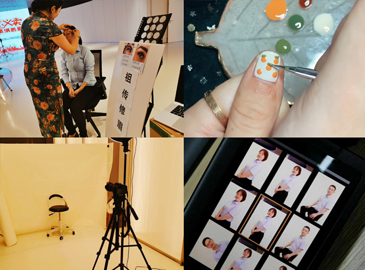 看!還有提供付費(fèi)服務(wù)作為義賣項(xiàng)目,賺足了眼球。有人在“祖?zhèn)餍廾肌钡膸椭伦兊酶n麗了;有人在美甲師的裝飾下變得更時(shí)尚了;還有人在溫暖的燈光下拍攝了自己的形象照......