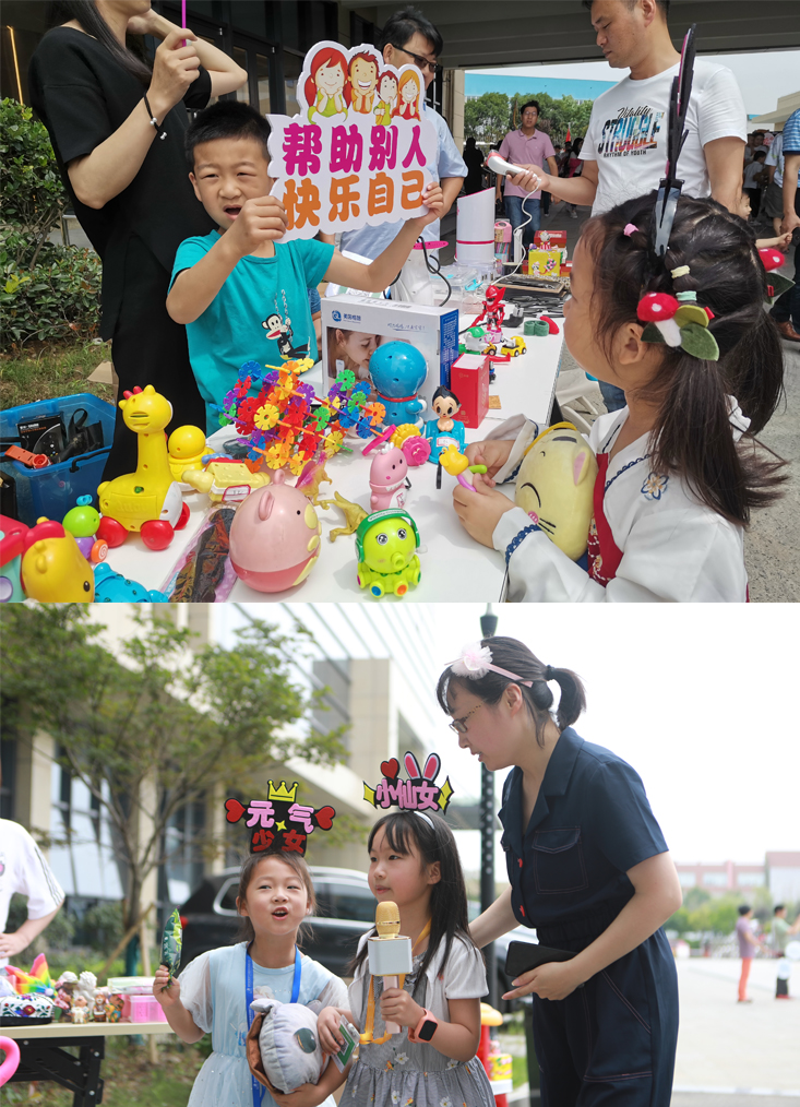 參觀完展廳,以中心為單位擺起了愛心義賣集市,孩子們捐出了閑置不用但又完好無損的學(xué)習(xí)用品、小玩具、小擺設(shè)、圖書、紀(jì)念品等,為了更多地籌集善款,孩子們搖身一變,一下子成了經(jīng)驗(yàn)豐富的售貨員和推銷員,現(xiàn)場吆喝聲不絕于耳。
